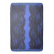 Farbfoto von schwarzer Spitze auf blauem, solidem Hintergrund.