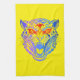 Diese lebendige Abbildung zeigt das Gesicht eines Tigers in einem Stammesdesign mit fett roten, blauen und lila Farbverläufen. Die detaillierten Muster schaffen ein erbittertes, aber künstlerisches Aussehen, Set vor einem dunklen Hintergrund.