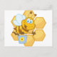 Lächelnde Biene halten einen Eimer vor Bienenwabe