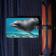 Niedlich lächelnder Delphin auf blauem Fantasy-Ozean Hintergrund, perfekt Geschenk für alle, die diese phantastischen Tiere Lieben