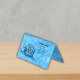 Diese Falte über der stehenden Visitenkarte ist ein lebendiges Aquablau mit einer lächelnden Fantasiesnail mit einer abstrakten blauen gemusterten Muschel in schwarz umrissen. Passen Sie alle Informationen auf der Vorderseite, auf der Rückseite und im Inneren mit den Vorlagen an.