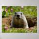 Lächelnder Groundhog entsteht aus Burrow zwischen Frühlingsblüten und Grüngras. Ein bezaubernder, lächelnder Erdenbach entfaltet sich aus seinem Höhepunkt, umgeben von blühenden Frühlingsblumen und üppig grünem Gras.