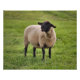 Schafe sind Wolltiere, die oft auf dem Bauernhof vorkommen. Es gibt viele verschiedene Schafe, aber dieses hier hat weiße Wolle und schwarze Beine und Kopf. Dieses Schaf bietet Ihnen ein scheues Lächeln, während er auf einem grasbewachsenen Hügel steht. Dieses Foto wäre ein großartiges Geschenk für alle, die Schafe, Nutztiere, niedliche Tiere oder lustige Tiere Lieben.