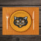 Lächelnde schwarze und orangefarbene Halloween-Kat Pappteller