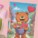 Feiern Sie Liebe und Freude mit diesem fröhlichen Teddybären-Poster. Dieses Kunstwerk mit einem glücklichen Bären, der einen farbenfrohen Geschenkkorb trägt und von spielerischen Herzen umgeben ist, eignet sich perfekt für das Dekor des Valentinstag, die Zimmer für Kinder oder als Geschenk für einen besonderen Gaumen. Eine lebendige und herzzerwärmende Illustration, die das Glück überall dort verbreitet, wo es angezeigt wird.