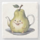 Lächelnder Birnenteich Stone Untersetzer. Ein Birnentee mit niedlichen kleinen Händen und Beinen, hell auf einem Teller gelächelt, große Samen durch den Mund wie hübsche Knöpfe.