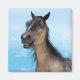 3D digitale Darstellung eines niedlich lächelnden Grullienpferdes mit blauen Augen auf blauem Himmelshintergrund. Perfektes Geschenk für alle, die Spaß und Lachen Lieben haben
