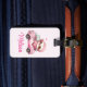 Ein Gepäckanhänger mit einer skurrilen Abbildung. Ein rosa Faultier, das in einem rosa Cabrio herumfährt. Schön.