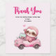 Lächelndes rosa Faultier, das ein Cabrio antreibt Weinetikett