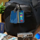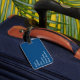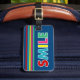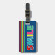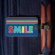 Farbenfrohe Lächeltextanzeige mit Streifen Dekoration auf blauem Hintergrund