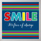 Farbiges Lächeln, kostenloses Textdesign mit Streifen-Dekoration auf blauem Hintergrund