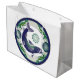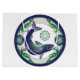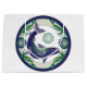Mit dem dreh seines Schwanzes taucht ein glitzernder Lachs in die Sicherheit der fließenden Seetang-Betten, um füttern. In dieser stilisierten Abbildung stellen Muscheln, Seetang, Plankton und Fischnetz die Elemente dar, die während des Lebenszyklus des Pazifischen Lachses je vorhanden sind. Das Design zeichnet sich durch schöne Meeresfarben in Blau, aquamarin, Grün und Grau aus. Eine perfekte Geschenkreihe für Naturliebhaber, Fischer oder alle, die ein Meeresthema Lieben.