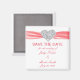 Diese schöne Rettung des Datums Magneten ist eine stilvolle, lang anhaltende Art, Ihren großen Tag zu verkünden. Personalisieren Sie den Magneten, indem Sie den Text in den angegebenen Feldern ändern. Sie können den Stil, die Größe und die Farbe des Schriftartes ändern.