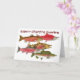 Humorvolle Karte, die 5 Spezies der nordamerikanischen Lachse ganz gezeigt in laichendem Regalia kennzeichnet. Sockeye, Chinook, Kumpel, Coho u. Buckel. Vom ursprünglichen Aquarell studiert von Natur aus Künstler, Glace Thom.