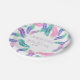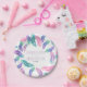 hübsche, moderne, handbemalte Wasserfarben-Federn, die die Teller der Hochzeitsfeier charakterisieren: elegante, farbenfrohe pastellrosa, lila, türkisfarbene boho chic handgemalte Aquarellfedern-Muster. Ideal für Hochzeiten im Frühling, Sommer und im Freien