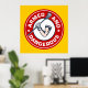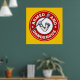 Poster de crosse - Armé et Dangereux. Conception d'emblème circulaire du bras musclé avec gant tenant la crosse bâton. Impression de l'affiche de crosse. Version rouge. Affiches et cadeaux pour les joueurs de crosse et les fans.