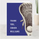 Einzigartige Lacrosse Coach Dankeschön-Karte mit einer laxen Stick-Abbildung auf blauem Hintergrund. So personalisieren Sie Text.