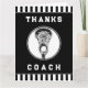 Lacrosse Team Coach Dankeschön-Karte mit laxem Stick auf schwarzem Hintergrund.