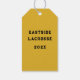 Lacrosse Geschenk- und Gastgeschenk-Tags mit laxer Stick-Kunst auf goldenem Hintergrund. So passen Sie für Team oder Spieler bearbeiten Text.