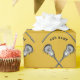 Lacrosse Geschenkpackung oder laxe Party Dekoration mit Crosse Sticks auf goldenem Hintergrund. Bearbeiten Sie Text, um den Namen des Spielers oder Teamcoachs hinzuzufügen.