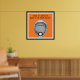 Motivierend Lacrosse Goalie Poster mit lachsfarbenem Stick auf orangefarbenem Hintergrund.