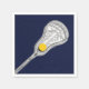 Creative Lacrosse Party oder Girls Mannschaftssportserien Servietten mit laxen Stock und Ball auf dem Feld der marineblau.