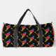 Ein Gemusterter, farbenfroher Duffel-Beutel für das schwarz-orange Sportspiel