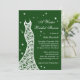 Délicates flocons de neige et une robe mariage de dentelle romantique accent cet hiver nuptiale invitation à la douche sur un arrière - plan vert profond. Faites défiler la page vers le bas pour voir d'autres éléments de cette collection.