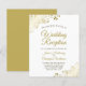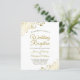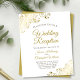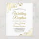 Diese preisgünstigen Einladungen sind für Gäste konzipiert, die zur Hochzeitsfeier eingeladen sind, aber nicht zur Zeremonie. Das Design ist weiß mit verzierten goldfarbenen Wandfalten in den Ecken. Die Typografie beinhaltet extravagante Schriftzeichen für einen Stil, der gleichzeitig einfach und elegant ist. Die perfekte Wahl für Eleganz, Klasse, Stil und Schönheit auf einem Budget.