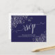 Lacy Silver Calligraphy Navy Blue Wedding RSVP Postkarte