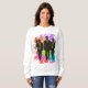 Printed on a crisp white ladies' long sleeve top, this design creates a powerful contrast, making the colorful chaos and sleek figures stand out. It's a perfect blend of vintage cool and modern artistic expression, ideal for those who love unique fashion with a playful, rebellious spirit.