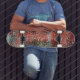 Imagem de pequenos quadrados tipo pixel que lembram uma parede de ladrilhos ou cerâmica vermelho, porém, com muitas manchas e pequenos respingos que parecem manchas e borrões de tinta spray.