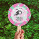 Und sie ist auf dem Altar! Ein Handventilator mit einer Dame mit einem Hut mit Ihrer Nachricht vor einem Hintergrund von heißen rosa, grünen und weißen diagonalen Streifen. Eine lustige Möglichkeit, cool bleibe und danke Gästen für ihren Besuch in Ihrem Derby themed Brautparty oder ändern Sie den Wortlaut und die Verwendung für eine Geburtstagsparty oder jede Gelegenheit. PASSENDE Artikel in unserem Geschäft.