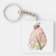Eine Dame käfelt auf einem verzierten Ostereier. Dieses Design wirkt auf diesem Schlüsselanhänger wirklich effektiv