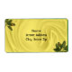 Dieses Label ist sehr einfach zu personalisieren und mit Bugs und Blätter der Dame geschmückt. Die Ecken umranden einen gelben Hintergrund. Entfernen Sie Text aus dem Vorlagenblock, sodass Sie nur den Hintergrund haben und Adressen von Zuhause oder Büro drucken können. Füllen Sie den Vorlagenblock mit Ihren Informationen aus, oder klicken Sie auf "Anpassen", um den Schriftart in Stil, Größe und Farbe auszuwählen. Diese Etikettengröße und skurrile Gestaltung würde ein lustiges Namensschild für einen besonderen gesellschaftlichen Anlass, ein Buchzeichen zur Identifikation Ihrer Immobilie oder als Geschenketiketten machen.
