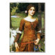 Spezielle Gruppierung des Gemäldes von John William Waterhouse von Lady Clare. Die Kunstwerke zeigen junge Frauen, die in den Wäldern ein weißes Hirsch führen. Die Malerei stammt aus dem 19. Jahrhundert.