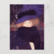 Eine Kunstpostkarte mit dem Gemälde des österreichischen Künstlers Gustav Klimt (1862-1918), Lady with Hat and Feather Boa (1909). Ein bezauberndes Portrait einer modischen Frau mit einem lila Hut mit Feder und schwarzem Band.
