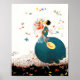 LADY MIT BLUME BOUQUET UND SCHALTFLÄDEN POSTER