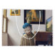 Johannes Vermeer (Oktober 1632 - Dezember 1675), im Original Niederländisch Jan Vermeer van Delft, war ein niederländischer Barockmaler, der sich auf innenpolitische Szenen des Mittelklassenlebens spezialisierte. Während seines Lebens war er ein moderat erfolgreicher provinzieller Genre Maler, der in Delft und Den Haag anerkannt wurde. Trotzdem produzierte er relativ wenige Gemälde und war offensichtlich nicht wohlhabend und verließ seine Ehefrau und Kinder bei seinem Tod in Schulden. Vermeer arbeitete langsam und mit großer Sorgfalt und benutzte häufig sehr teure Pigmente. Er ist besonders bekannt für seine meisterhafte Behandlung und den Einsatz von Licht in seiner Arbeit. "Fast alle seine Gemälde", schrieb Hans Koningsberger, "sind anscheinend in zwei kleinen Räumen in seinem Haus in Delft Set; sie zeigen die gleichen Möbel und Dekorationen in verschiedenen Arrangements und stellen oft dieselben Menschen dar, meistens Frauen." Seine bescheidene Berühmtheit machte nach seinem Tod der Unklarheit Platz. Er wurde kaum in Arnold Houbrakens größtem Quellbuch über die niederländische Malerei des 17. Jahrhunderts (Großtheater der niederländischen Maler und Frauen-Künstler) erwähnt und daher für fast zwei Jahrhunderte aus den nachfolgenden Untersuchungen niederländischer Kunst weggelassen. Im 19. Jahrhundert wurde Vermeer von Gustav Friedrich Waagen und Théophile Thoré-Bürger wiederentdeckt, der einen Essay veröffentlichte, der ihm 66 Bilder zuordnete, obwohl ihm heute nur 34 Gemälde allgemein zugeschrieben werden. Seit dieser Zeit ist Vermeers Ruf gewachsen, und er gilt heute als einer der beststen Maler des holländischen Goldenen Zeitalters. Zitat: Wikipedia