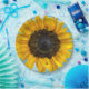 Gelbe Sonnenblume mit Ladybug auf blauem Himmelshintergrund.