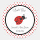 Rundaufkleber für Babydusche mit ladybug-Thema und rot-schwarzer Farbkombination.