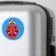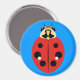 Dieser Magnet verfügt über ein hübsches rotes ladybug-grafisches Set vor blauem Hintergrund.