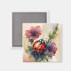 Magnet zeigt Aquarellbilder eines Ladybugs auf einer blühenden Pflanze. Ein botanisches Insektenportrait mit einem gepunkteten roten und schwarzen Bug zwischen lila und roten Blume. Ein weibliches ästhetisches Portrait.