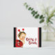 Mädchen Bringen Sie eine Babyduschkarte mit einem hübschen blonden Mädchen mit einem niedlichen roten und schwarzen Ladybug-Outfit auf einem roten und schwarzen Hintergrund mit niedlichem rotem Ladybug-Text auf der Vorderseite mit. Sie können die Hintergrundfarbe ändern. Fügen Sie den von Ihnen gewünschten Text in den von Ihnen bevorzugten Schriftart ein.