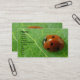 Diese niedliche Gärtnerkarte zeigt ein nahes Foto eines britischen 7-Spot-Ladybird, der auf einem Blatt sitzt. Das Foto wurde direkt über dem Ladybug mit Makrofotografie aufgenommen, was zu einem so detaillierten Bild führte, dass man alle Adern auf dem Blatt sehen kann, auf dem der Ladybug sitzt. Das Foto ist auf der Vorderseite der Visitenkarte, begleitet von anpassbarem schwarzen Text. Auf der Rückseite der Visitenkarte befindet sich eine erweiterte Version des Fotos. Diese Visitenkarte wurde für Gärtner konzipiert, ist aber auch für andere Unternehmen geeignet.