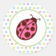 Ein rosa und braun gezogener Ladybug ist der Brennpunkt dieses Aufklebers. Diese niedlichen Ladybug-Aufkleber sind für Geschenke, Geschenktaschen, ein Scrapbook, einen Geburtstag, eine Babydusche, Kunsthandwerk, Umschlag Aufkleber, Einladungen, Schule, Business, Zuhause, Office, etc. geeignet.