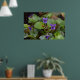 Ladybug über süße Violettsorten-Blume Poster