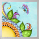 Mit diesem wunderschönen Ladybug und Butterfly Doodle Blume Poster dekorieren Sie Ihr Zimmer oder Ihren persönlichen Raum. Ladybug und Butterfly Doodle Blume ist eine charmante und skurrile große Doodle-Blume mit Blätter, die durch einen Ladybug und Schmetterling von Debi Payne Designs hervorgehoben werden. Die Doodle-Blume hat ein großes gelbes Zentrum, das von einem schmalen, schwarz-weißen Karo umgeben ist. Die Blume besteht aus zwei Reihen überlappender, winziger orangefarbener Blätter, die sich in überlappenden Lavendelschleifen befinden. Aus der Blume stammen vier grüne Blätter und vier bunte Wirbel mit Mustern. Auf einem der Wirbel zu sitzen ist ein kleiner Ladybug. In der Luft schwebend, als ob man mit dem Ladybug spricht, ist ein schöner Schmetterling in den Farbtönen lila, Rose und aquamarin. Das gesamte Design ist über einen aquamarinen Aquarellfarben-Hintergrund.