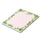 Niedlicher, glücklicher Ladybug umgeben von viel Glück-Vierblättrigen-Kleber auf hellrosa einfachem Notepad. Ideal für alle. Lady Bug ist ein universelles Glückssymbol! Ideal für Kinder und Erwachsene!