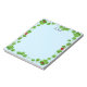 Niedlicher, glücklicher Ladybug umgeben von viel Glück-Vierblättrigen-Klebern auf hellblau einfachem Notepad. Ideal für alle. Lady Bug ist ein universelles Glückssymbol! Ideal für Kinder und Erwachsene!